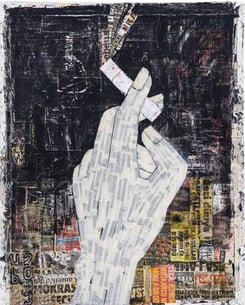 Zeitung, Acryl, Klebeband auf Leinwand, 80cm x 80cm -