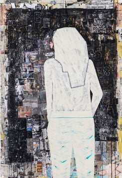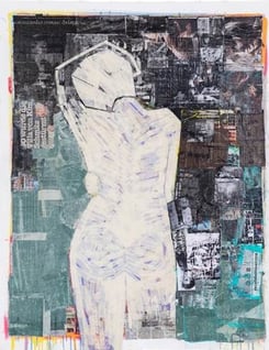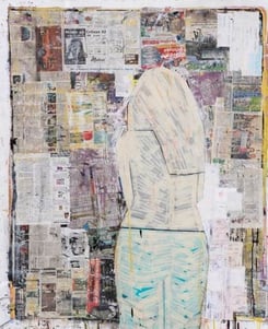 Zeitung, Schnittmuster, Acryl, Klebeband auf Leinwand, 174cm x 153cm - verkauft