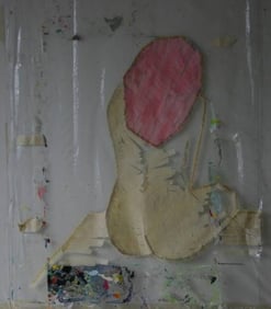 Klebeband, Acryl, Ölkreide auf Plastik, 176cm x 100cm