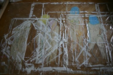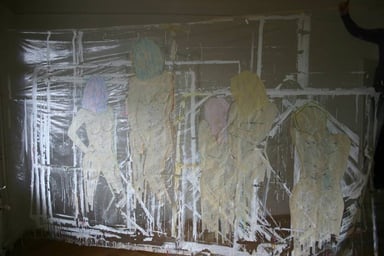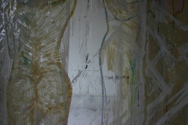 Klebeband, Acryl, Ölkreide auf Plastik, 230cm x 400cm